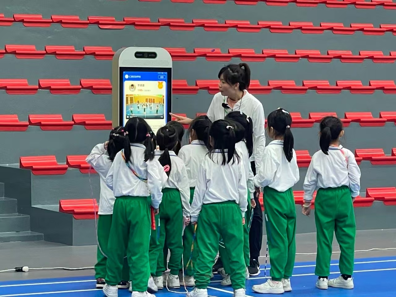 课间时分,学校的孩子纷纷奔向体育角,簇拥在“智慧一体机”设备前,自发进行跳绳比赛。借助智能设备终端,学生的跳绳成绩与排名即时显现。一场场校园跳绳“PK”赛,就这样悄然间成为学生课余生活的一种常态。