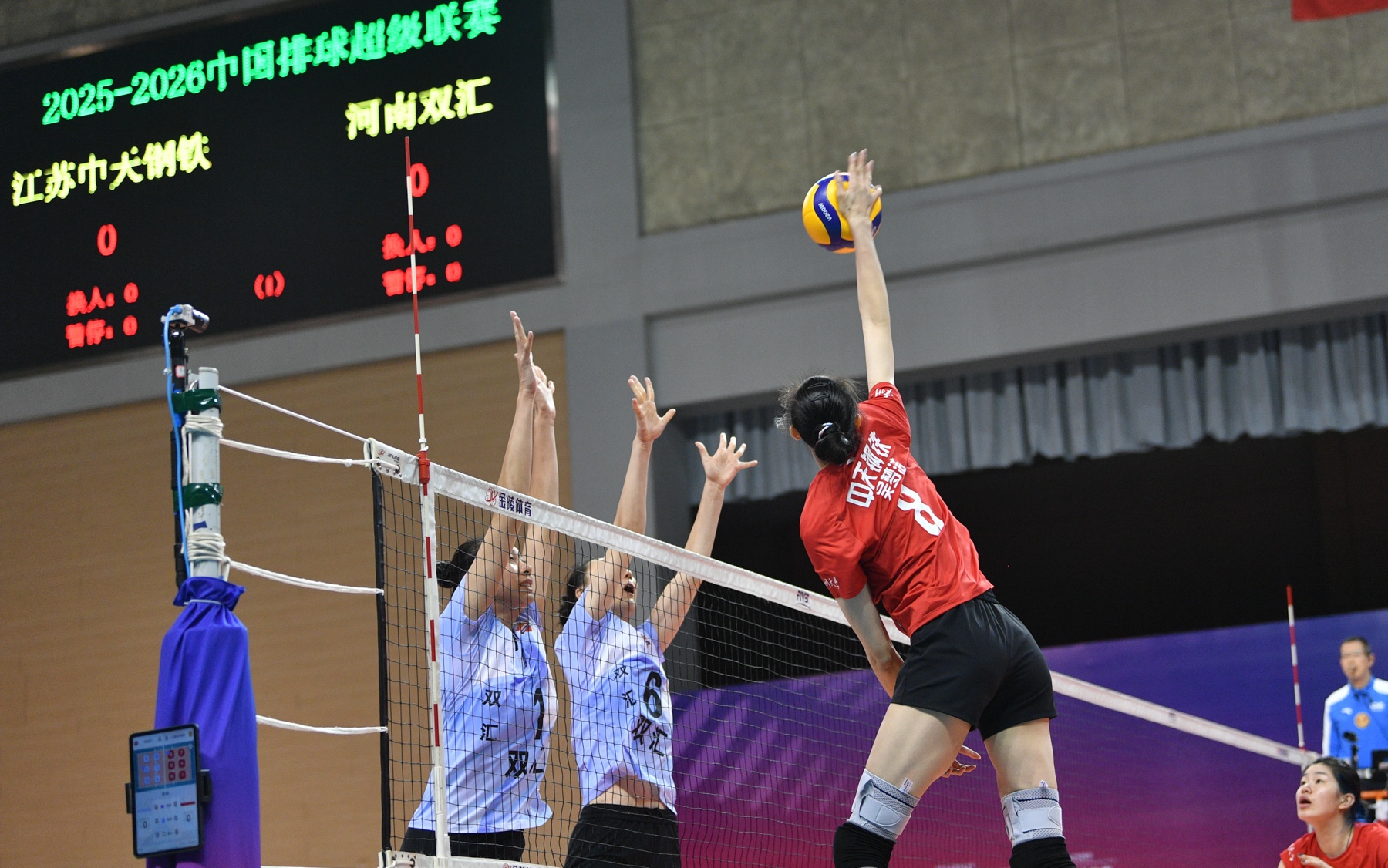 最终,江苏女排3:1战胜河南女排取得开门红,江苏女排的首发阵容是主攻吴梦洁、范泊宁,副攻万梓玥和杨佳,接应唐欣,二传张籽萱,自由人倪非凡,河南女排的首发阵容是主攻姆拉德、蔡晓晴,副攻李若琦和黄瑞蕾,接应段梦可,二传张籽涵,自由人王思敏。第一局双方在10分之前你一分我一分,过了10分以后,河南女排卡轮,分差逐渐被拉开,最终江苏25:13轻松拿下第一局。第二局双方比分一直比较接近,焦帅的换人还比较灵活,最终河南女排2分优势扳回一局。