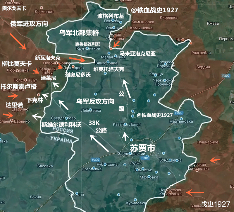 与此同时,俄军在新瓦诺夫卡的推进被乌军反推了回去,乌军又攻入了该村东部,因为这里的乌军同样得到了来自马来亚洛克尼亚的支援。乌援军先从苏贾沿公路前往马来亚洛克尼亚,然后在沿着马来亚洛克尼亚至新瓦诺夫卡的公路,向新瓦诺夫卡推进。乌军一直通过猛烈的反冲锋来抵消俄军的进攻,尽管俄军摧毁了乌军大量的北约装甲车,但每当乌军的反冲锋被击溃后,乌军又会发起新一波的反冲锋。而源源不断抵达的预备队能够及时补充乌军的损失。