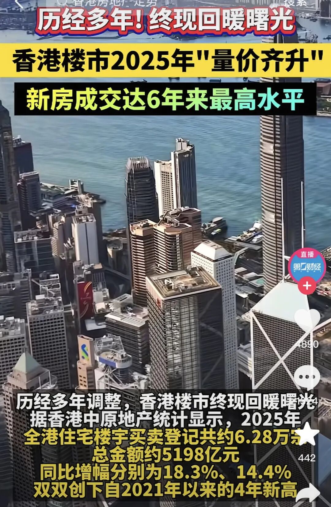 2月整体物业成交量达到7924宗,环比增长84%,创下22个月次高。二手楼价创下逾2年新高,港岛和新界东楼价单月上涨超过2%。