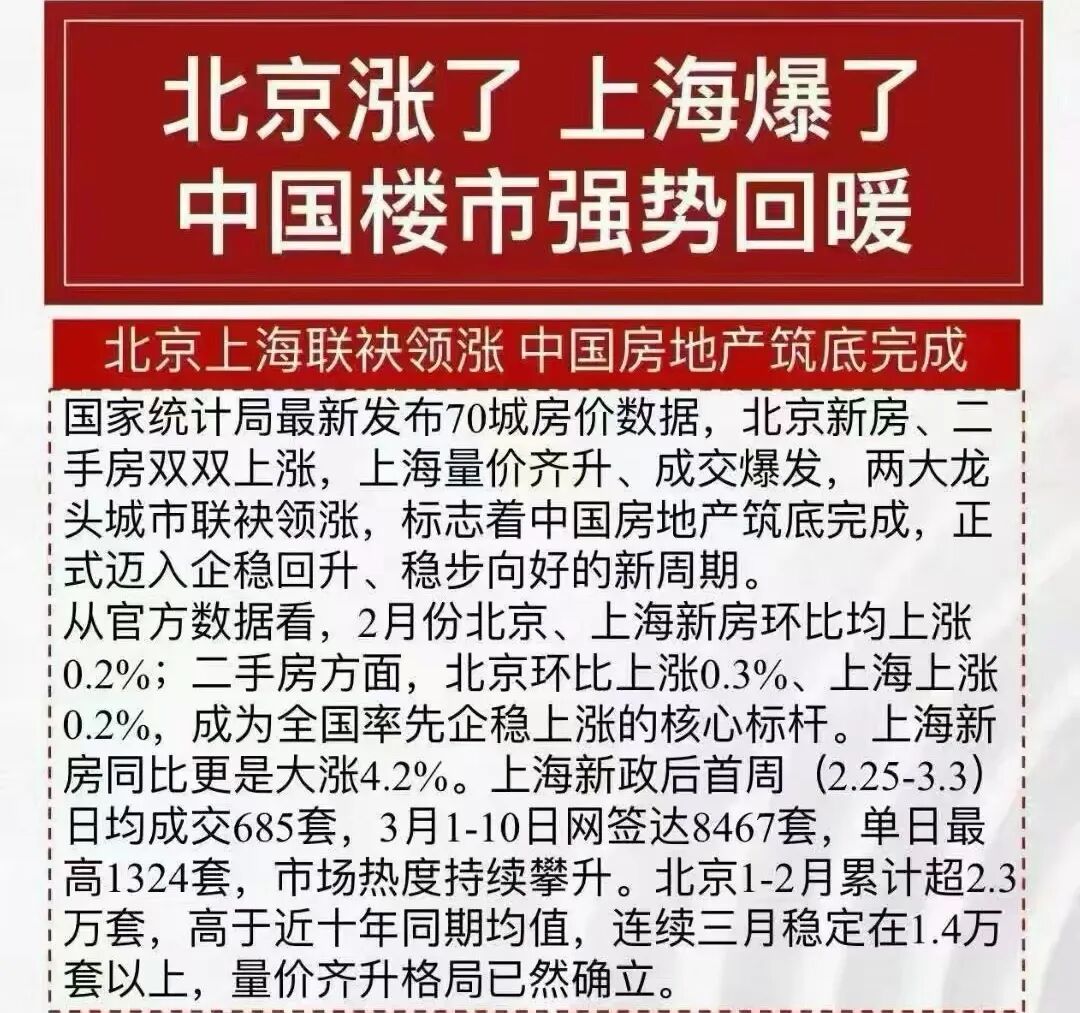二手房价格2月环比上涨0.3%,新房价格上涨0.2%。通州区的资深中介反馈,现在一套房七八组客户同时看房已经是常态。