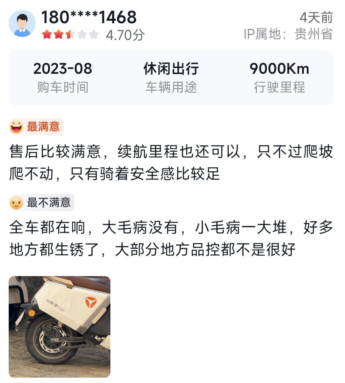 依托这些真实骑行用户的充电行为数据,让每一条评价都源于实际体验,特别是“购车时间早、行驶公里数长”的用户评价,能更真实的反馈车辆的长期可靠性与售后服务。