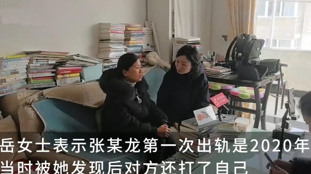 2024年,张某龙再次出轨,岳女士将丈夫与另一女子捉奸在床,并用手机全程记录。