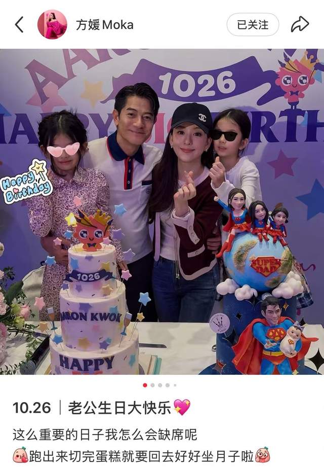 虽然不知道蛋糕是谁准备的,但能看出花了不少心思。尤其是超人这个主题,可能就是想表达“全家都是超人”的意思吧——郭富城年过六十还能唱能跳,方媛生完孩子迅速恢复,连孩子们都活力满满!