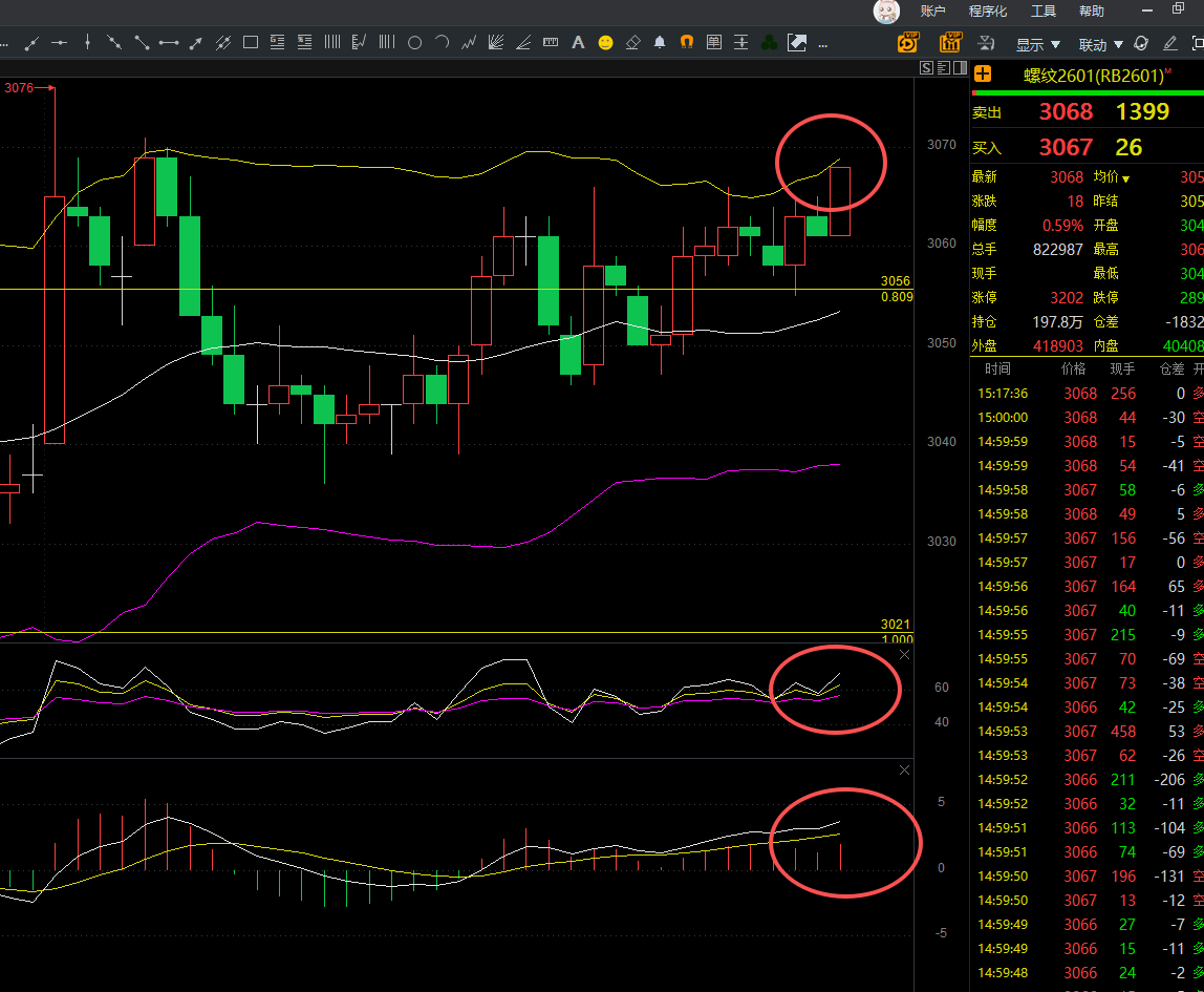 螺纹钢2601合约:基本面:市场普遍预期 10 月 23 日结束的会议四季度会出台更有力的财政与货币政策组合,支持基建投资和房地产合理融资等,政策若加速落地将显著提振钢材需求。另外,10 月下旬将公布的十五五规划纲要,市场关注其在新型城镇化、绿色低碳高端制造等领域的投资方向,可能会带来长期需求想象的空间。技术面:螺纹今天站上3055得压力后,MACD抬头有加速上行趋势动能下一个目标看3090压力情况操作建议:螺纹钢低多为主