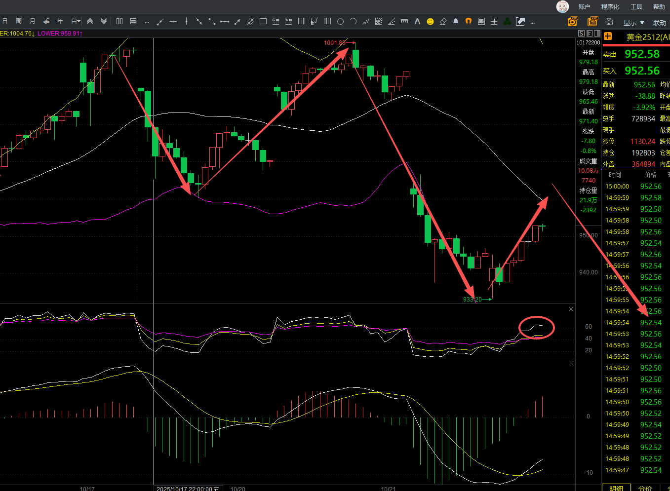 沪金2512合约:基本面:贸易摩擦缓和、地缘政治出现缓和消息,使得市场避险情绪有所降温。此外,金银价格持续突破历史新高,短期风险逐渐累积,投资者获利了结抛售,导致沪金期货价格下跌。不过,货币宽松预期对贵金属的中期利好并未动摇,机构人士认为这不是趋势反转。上周四美国两银行披露贷款欺诈和坏账问题,信用危机触发抛售,多位美联储官员周内释放偏鸽信号,就业市场下行风险明显,暗示降息窗口已打开,对贵金属形成中期利好。技术面:昨日黄金白银均是大幅跳空低开,今天弱反弹但是反弹力度不足整体趋势短期还是弱震荡,后续需要关注得是这两天黄金能否企稳二次冲高,上涨不破顶部确定则高空为主,目前黄金短线趋势偏弱操作建议:黄金回踩低多,持续不破高位则考虑进场轻仓空单期权