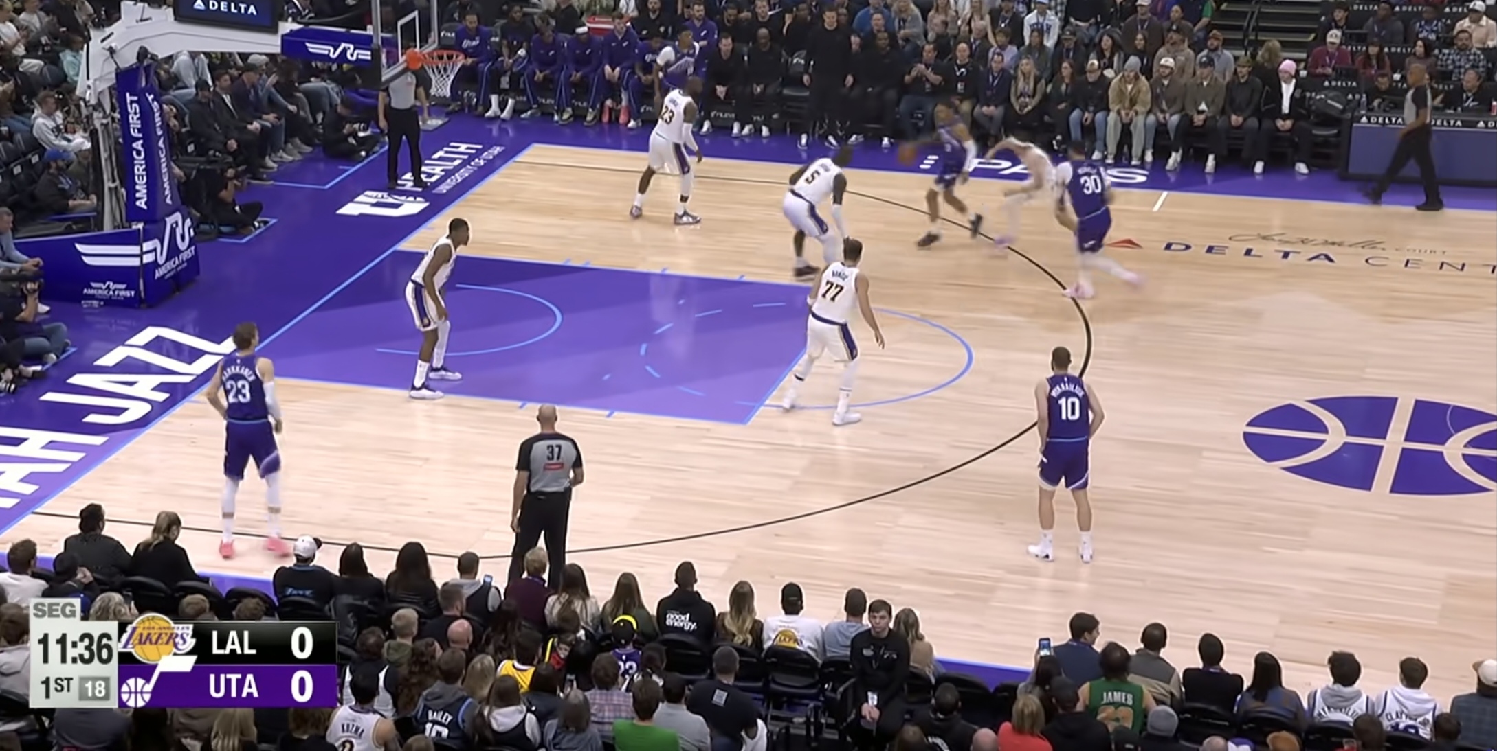 以开场爵士第一个进攻回合为例(此时最容易观察主教练的赛前部署)。
