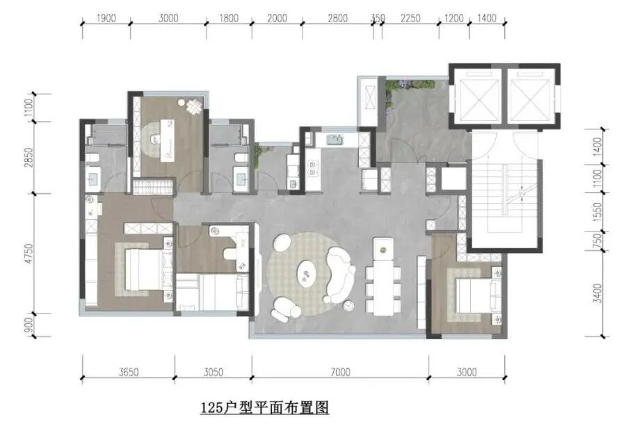 ◎ 锦樾序建面约125㎡户型空间规划示意图