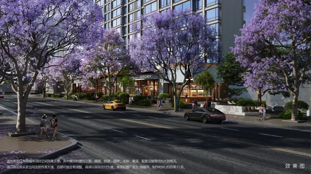 锦樾序与相邻的锦城序共同形成黄金二八核心的大城生活圈,两个项目之间规划了一条超400米的蓝花楹归家大道,未来的唯美场景尽现眼前。