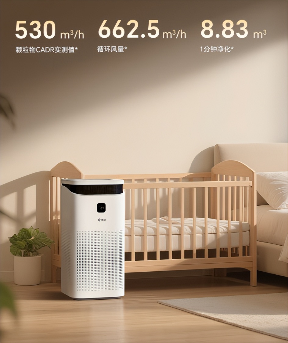 对比传统净化器(多为 45cm×45cm×80cm 以上),新颐 A5 占地面积减少 40%,哪怕是 10㎡ 的迷你次卧,也能轻松放下,不会显得拥挤压抑。