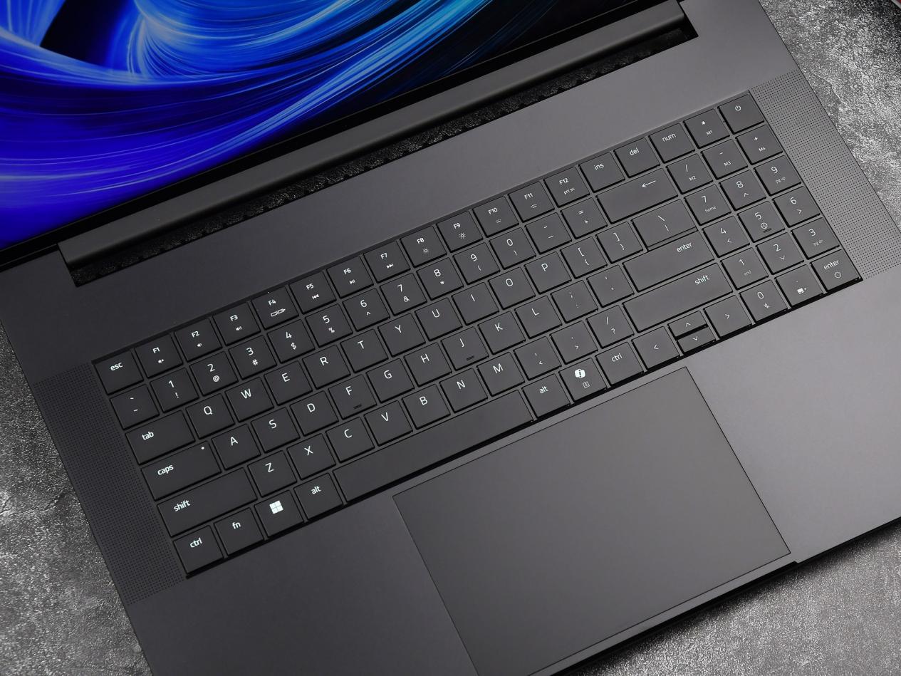 得益于超大尺寸机身,雷蛇灵刃18 2025的触控板和腕托面积非常大,前者表面触感光滑,操控跟手,左右按键无死区;后者承托舒适度极高,用户长时间使用电脑时,腕部不会轻易感到疲劳。