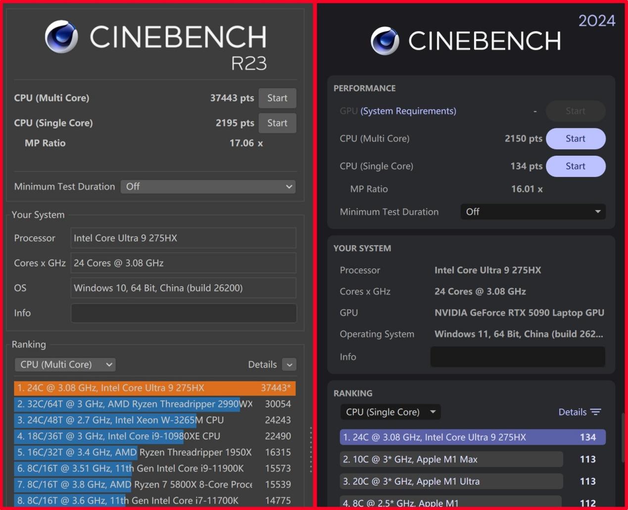 ·酷睿Ultra 9 275HX性能释放强力
