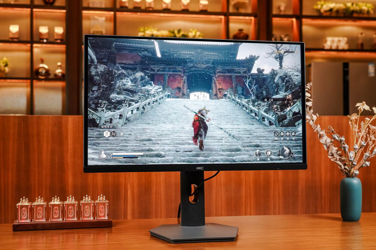 镜面背板的顶部赫然印有“HKC GAMING”字样及品牌电竞系列最新的“G”形logo,这不仅凸显了产品的电竞血统,更鲜明地强化了这款显示器专为游戏玩家打造的精准定位。