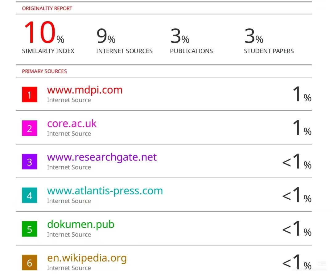 Turnitin国际版+AI查重是以句子为单位来检测重复内容,系统只会标出每个句子的最大重复率来源,而隐藏了那些相对效小重复的信息。在论文修改时,如果只是针对查重报告中最大的重复来修改的话,而忽略了小的重复,修改后仍可能会出现重复。