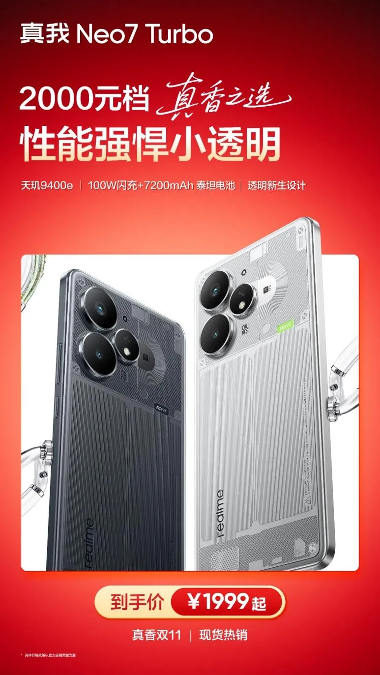 2000元档真香之选:性能强悍小透明真我Neo7 Turbo,双11到手价1999元起