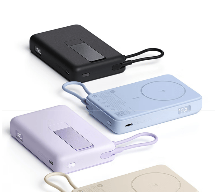小米这款充电宝内置10000mAh电池,重量约229g,兼顾了容量与便携性,日常随身携带毫不费力。它不仅支持磁吸充电,还配有自带线,出门无需额外准备数据线,使用更加省心。机身还贴心设计了可折叠支架,边充边追剧更方便。充电性能方面,最高可达30W快充,能够为手机、平板等设备高效补能。正面配有数码显示屏,实时显示剩余电量和充电状态,让使用体验更直观。整体而言,这款充电宝在功能和便捷性上都很均衡,非常适合经常外出的用户。