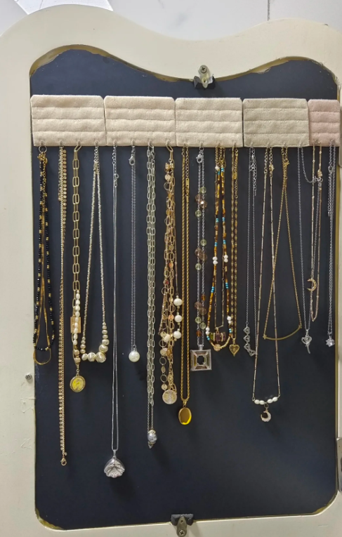 或者是粘贴到墙面上,也能方便收纳,真的是超级的好用,首饰也在不会缠绕在一起了!