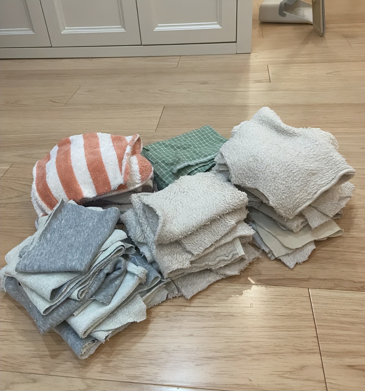 家中的旧衣服,如果不舍得扔的话,可以试试裁剪成块,当做抹布,是不是超级的好用呢?