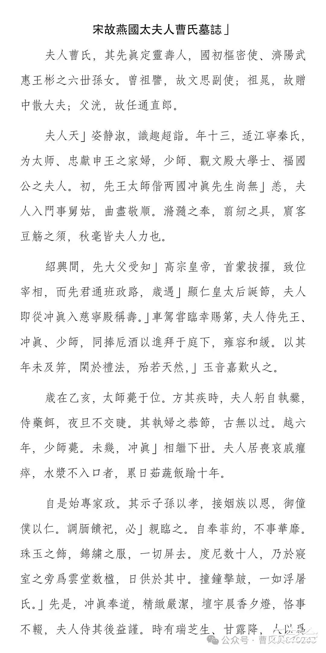 秦熺夫妇合葬墓出土有墓志铭一方,为“宋故燕国太夫人曹氏墓志”,现将墓志志文贴上,供爱好者研究。