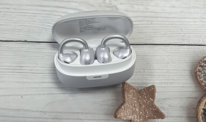 漫步者这款走的是实用亲民路线,磨砂质感的外壳不沾指纹,看着低调但很耐脏。佩戴上,5.8克的单耳重量戴着轻巧,空气弧软梁设计贴合耳廓,日常上班、逛街戴着挺舒服,只是耳夹弹性一般,剧烈运动时偶尔会晃。