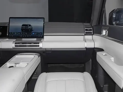 进入车内,钛7展现出了惊人的空间利用率和人性化设计理念。仪表及中控采用阶梯式双层中控台设计,第二层中央开敞储物槽方便放置手机、钱包等随手物品。配置方面,液晶仪表盘与多媒体触控大屏形成“双屏”布局,辅以怀挡式换挡设计,整体科技感十足且操作便捷。空间是钛7的一大亮点,得益于其方盒子造型的车身结构,座舱有效长度达到3310毫米,得房率高达70.9%,相比传统SUV空间利用更高效。这种结构设计让车内乘员无论身高多高皆可保持挺括坐姿,车内成年人甚至可以半站立状态自由行动,小孩在车内活动也更加自如。后备箱容积方面,常规状态下拥有970升(部分资料显示1000升)的超大空间,外挂的32.5升储物箱再次拓展了实用容量。放倒第二排座椅后,储物容量达到1880升,理论上可装载多达18个20寸加5个22寸行李箱,提升了出行储物能力。此外,钛7设计了多达47处储物空间,布局相当合理且隐蔽,门板处可垂直放入1.5升饮料瓶,副驾脚下的抽屉则能灵活存放如高跟鞋、无人机等物品,极大丰富了车内收纳环境,兼顾整洁与实用。