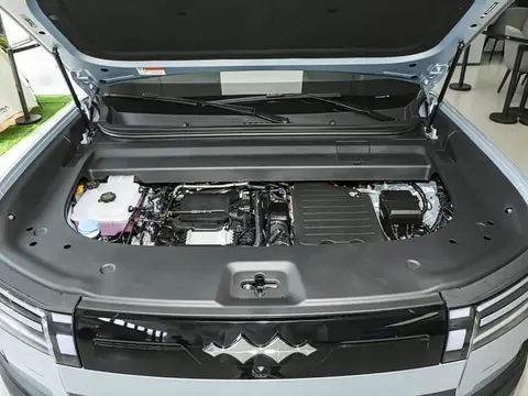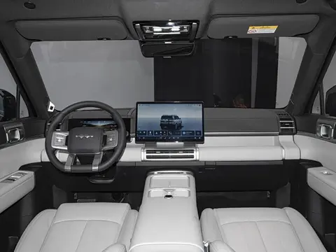 钛7的外观设计极具辨识度,走的是典型的“方盒子”硬派路线,整体车身线条笔直硬朗,呈现出浓厚的SUV越野气息。前脸采用封闭式设计理念,搭配亮黑材质面板,中央方程豹发光LOGO格外醒目。两侧为双层L形灯带与方形头灯的组合,犹如星际战舰般的科技感扑面而来,不同于传统SUV的圆润与流线,彰显强烈个性。侧面的设计同样突出硬派属性,配备与车身同色的宽大轮眉、方形后视镜和固定式踏板,这些都是提升车辆粗犷感和实用性的细节所在。车身尺寸方面,钛7长达4999毫米,宽度达1995毫米,高度为1865毫米,轴距达到2920毫米,近5米的车长和近2米的宽体造型在视觉上极具震撼力,既符合大家庭需求,还给人足够的尊贵感。车尾设计别具匠心,采用侧开式尾门搭配外挂储物箱设计,区别于传统备胎结构,这一“小书包”储物箱内部还配备置物网,方便存放杂物,兼顾美观与功能性。尾部双层尾灯的设计透露出科幻感,增强夜间的视觉识别度。色彩方面,钛7提供七种车身颜色和三款内饰配色供消费者选择,同时官方商城还推出六款潮改方案,满足用户不同的个性化审美需求,为消费者提供了丰富选项。