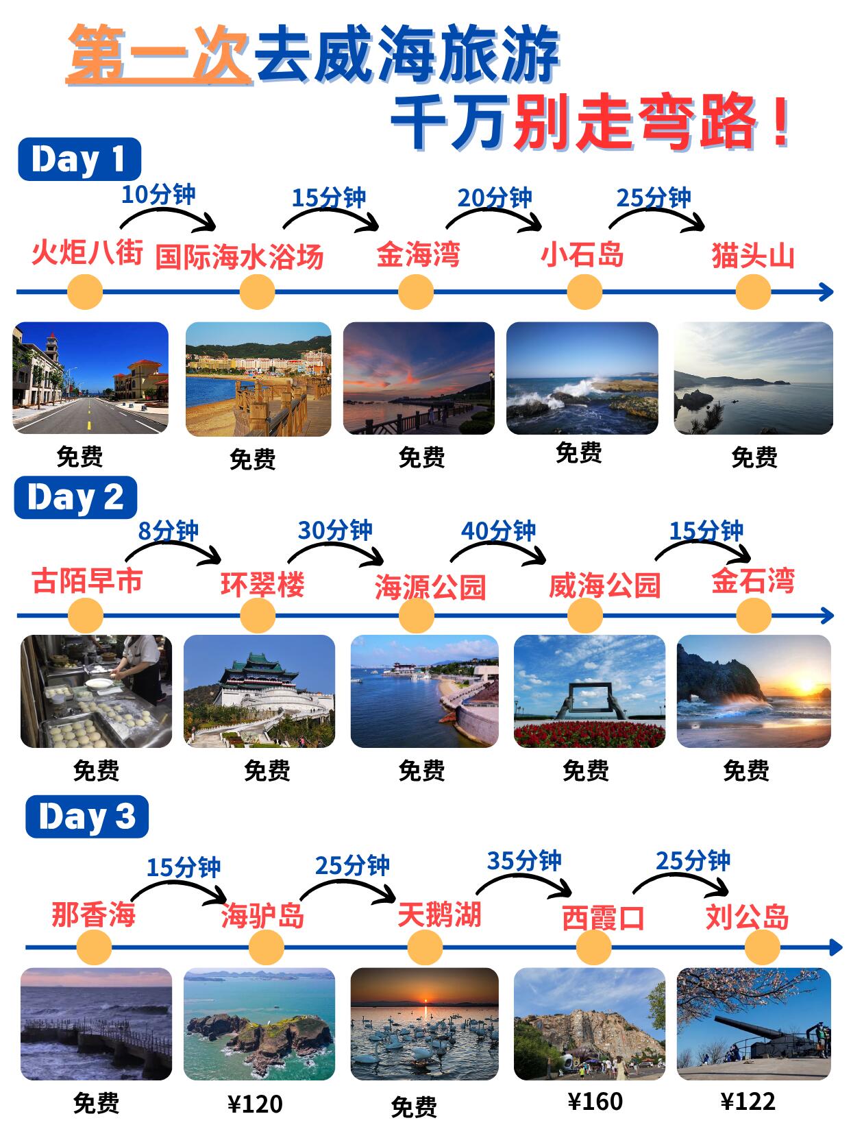 古陌早市☞环翠楼公园☞海源公园☞威海公园☞金石湾