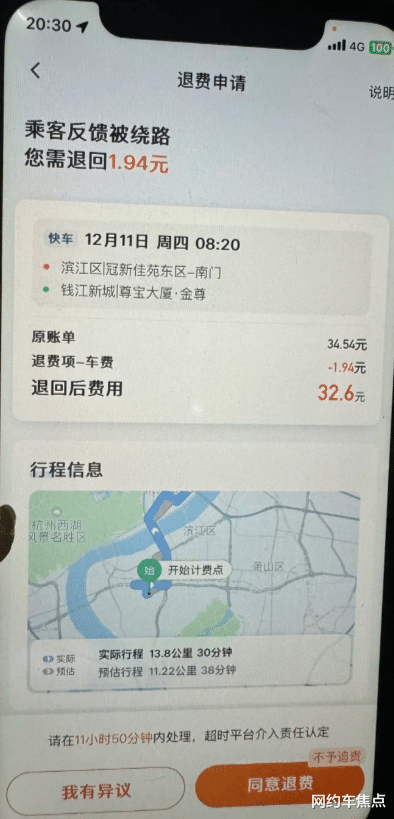但行程刚结束,投诉就来了,理由是“绕路”,车费被退回。