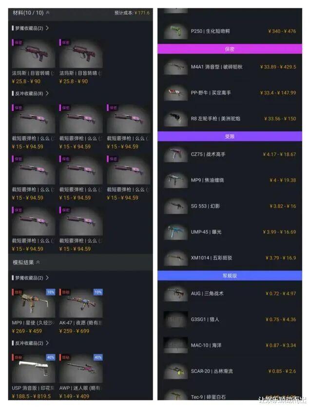 (汰换和开箱的产出示例,图源:网易Buff App)