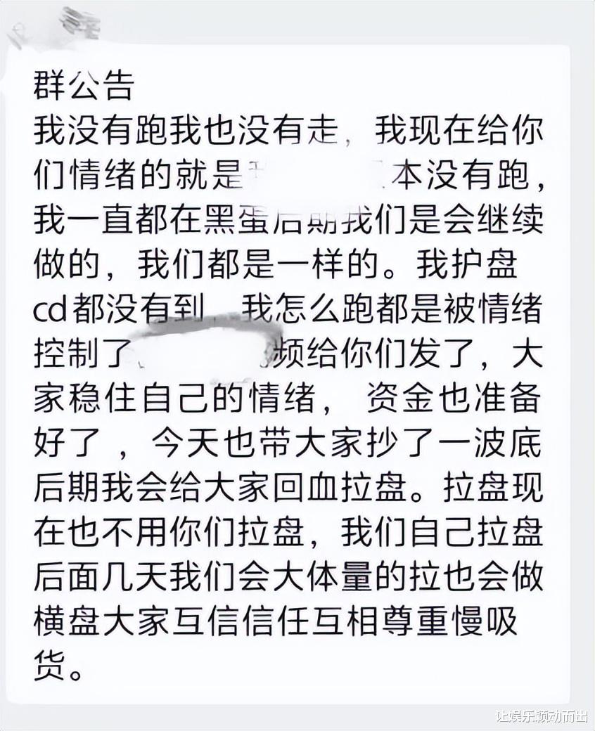 然而,九月中旬,当“黑蛋”触及3000元大关时,毫无征兆的下跌开始了,一路滑向2000元。不安如毒蛇缠绕心头,我急切询问盘主,却只等到群公告,此次价格回跌属于“技术性回调”。公告后附了几张惊人的资金截图,以及一句悲壮承诺:“兄弟们,我会全力护盘!要死,我给大家垫背!”