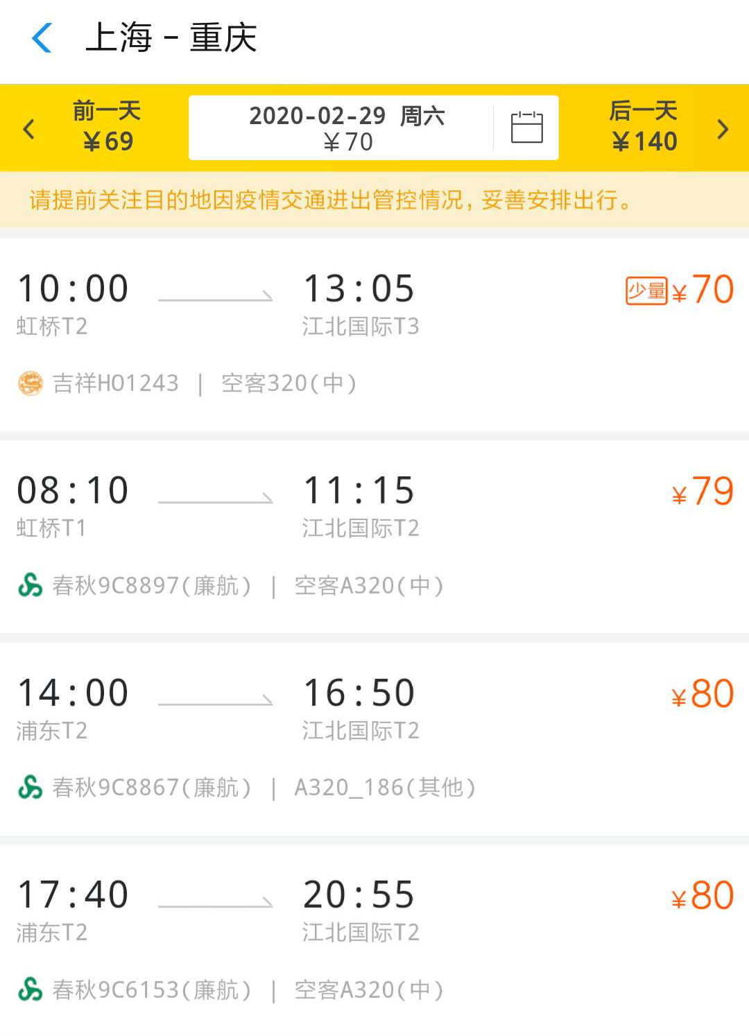 今天一觉醒来就被各种推荐,机票价格降至冰点,困在家不能出行的人们只能酸溜溜的吃瓜了。机票具体降到什么程度呢,看看下边飞猪的价格: