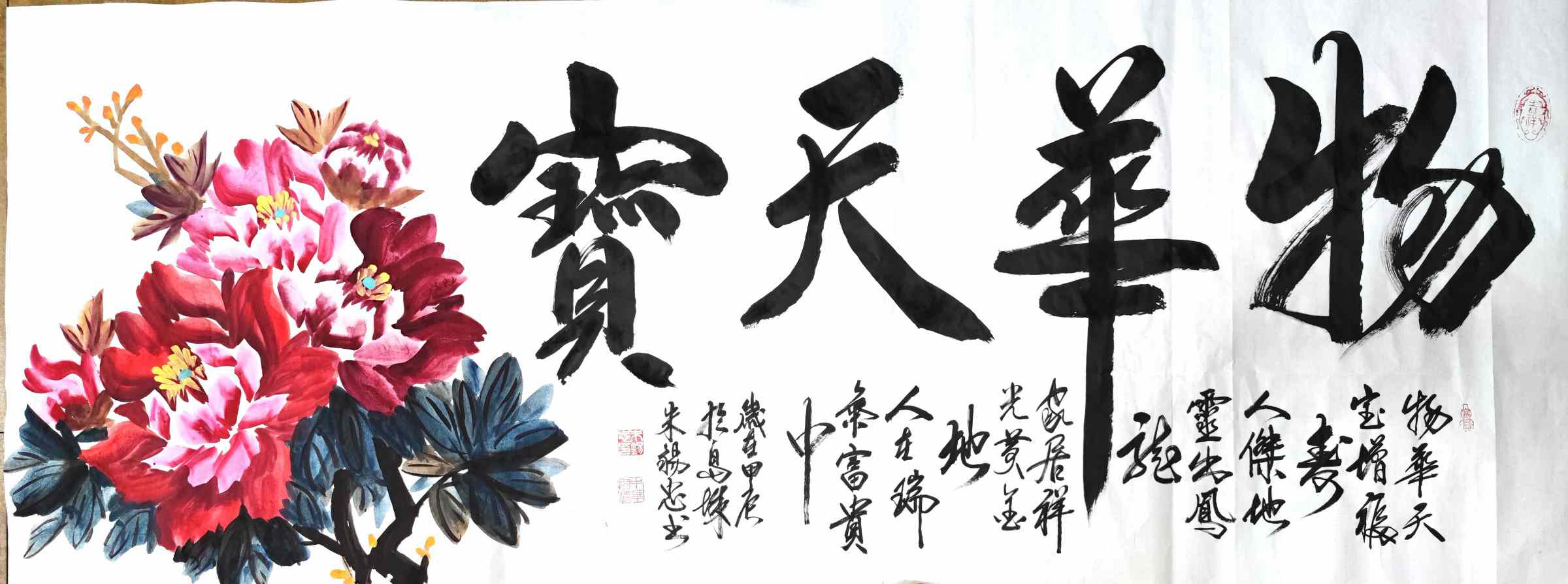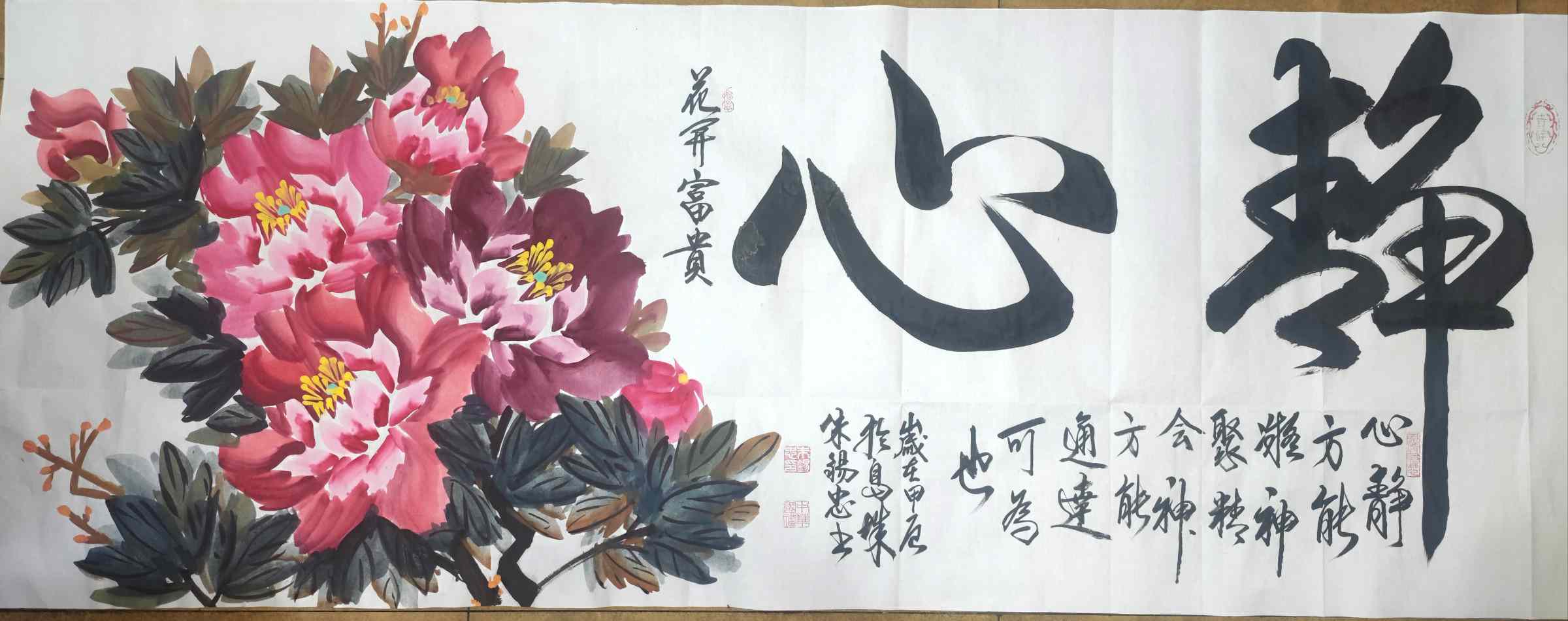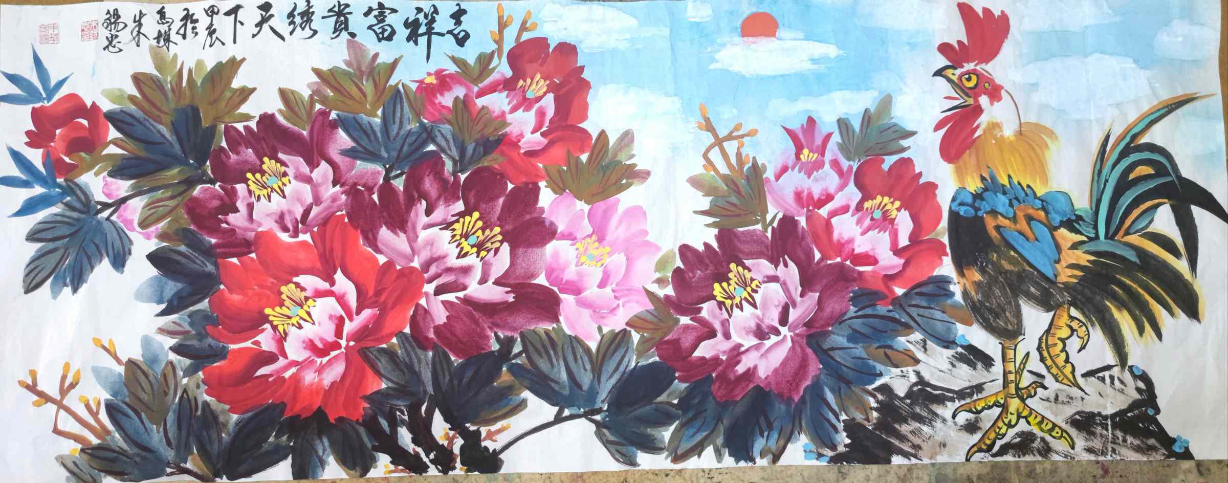 朱锡忠的艺术道路始于对传统的深刻体悟。他书画同修,以书法入画,以画意润书,在笔墨的律动中探寻着中国艺术的本源精神。其作品《富贵吉祥》被中国国家博物馆收藏,正是这种艺术追求的生动体现。画面上牡丹雍容华贵,枝叶舒展有度,墨色浓淡相宜,既继承了恽南田没骨花卉的细腻传神,又融入了吴昌硕金石笔意的苍劲厚重。这种对传统的创造性转化,使其作品具有了穿越时空的艺术魅力。在《唯有牡丹真国色》中,他通过墨色的层层渲染,表现出牡丹"国色朝酣酒,天香夜染衣"的华贵气质,这幅作品被俄罗斯联邦驻华大使收藏,成为中华文化走出去的生动注脚。
