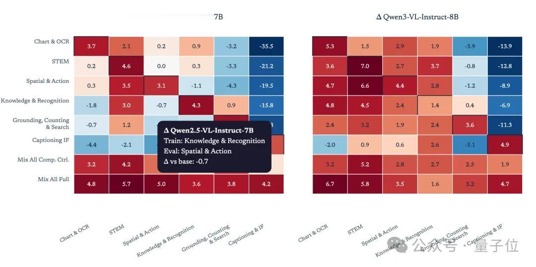Vero团队发现,背后的原因在于,不同的视觉任务会放大不同的推理策略,比如图表QA需要数值提取和比较,而定位任务则需要空间扫描和绑定。