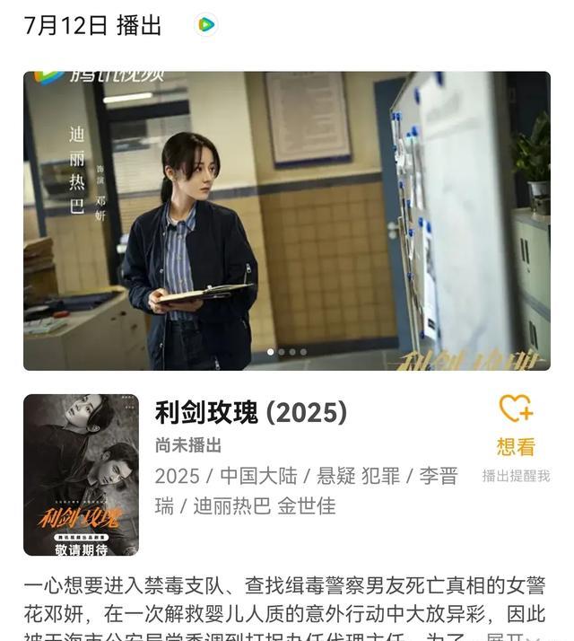 《利剑玫瑰》7月12日央八播出,腾讯独播。
