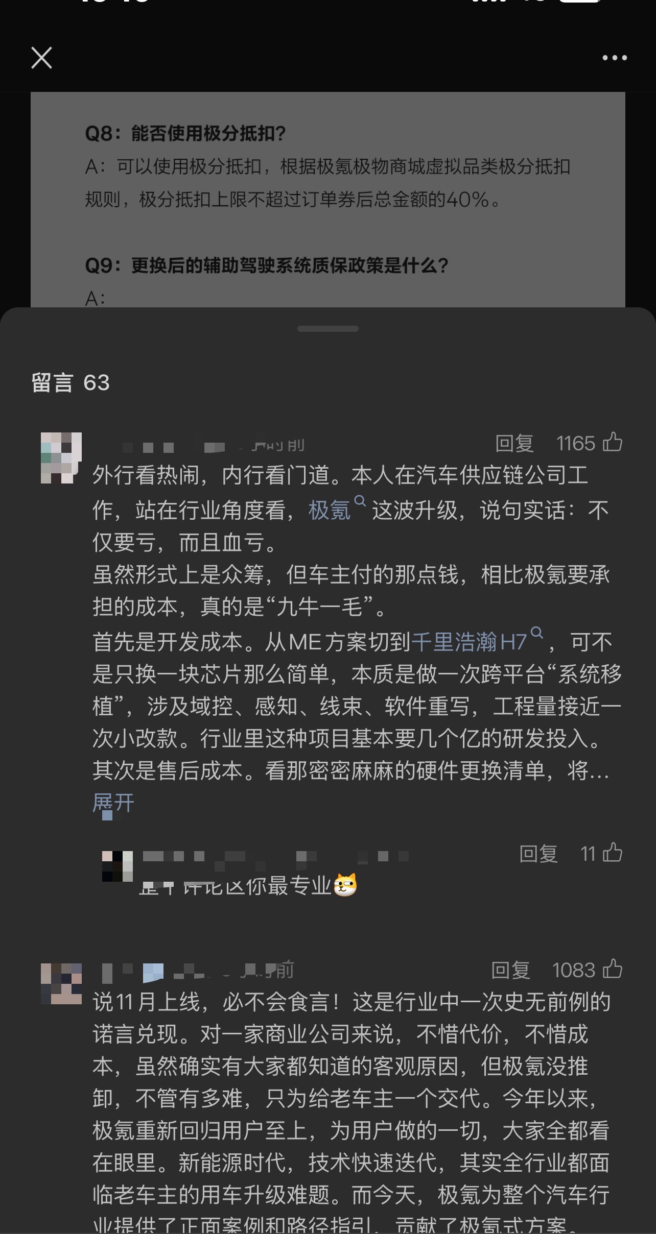 车主们的态度也挺实在,有人说 “极氪愿意花心思解决老用户的问题,比很多品牌强”,但也有人说 “升级太贵,等得起但没必要”。其实大家在意的不是能不能升级,而是品牌有没有把老用户当回事。极氪这次的一系列操作,从服务公约到高管互动,再到权益转移,都是在说 “你们的声音我听到了,我在努力改”。