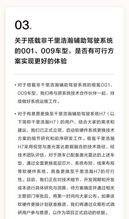 极氪这次众筹的规则很明确:11 月 24 日开始,到 12 月 24 日结束,只有 2024 款带激光雷达的 001 和 009 车主能参与,抵扣权益券后,001 最多花 13500元,009 不超 2 万。钱也不算少,换谁都得琢磨琢磨。要是你打算再开两年就换车,其实也不用急着参与,拆车重装也让人心里没底,后期会不会有异响、电子系统会不会不兼容,都是未知数。而且升级得等大半年,2026 年 5 月才开始给 001 升级,009 还得再等两个月。这段时间用车可能受影响,不想凑这个麻烦的话,也可以观望后续反馈再决定。