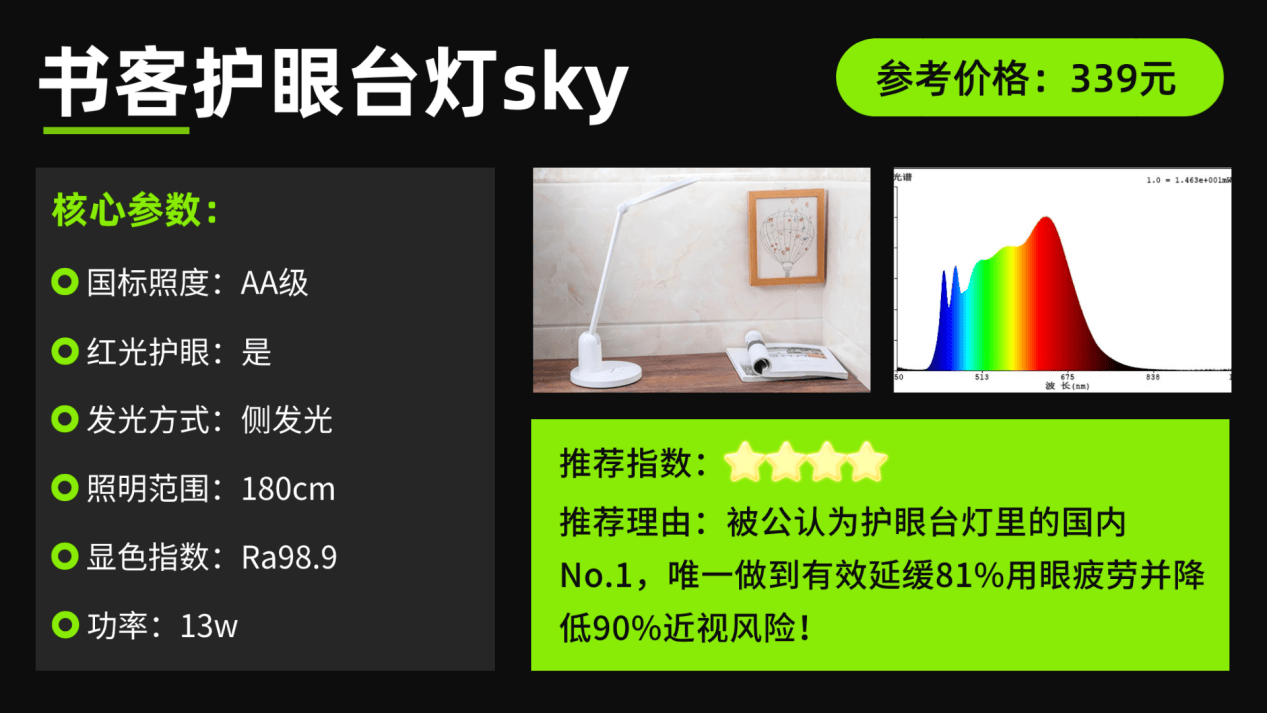 一句话推荐:主打“医学养护眼”的特性,是唯一做到降低96%近视风险的护眼灯款式