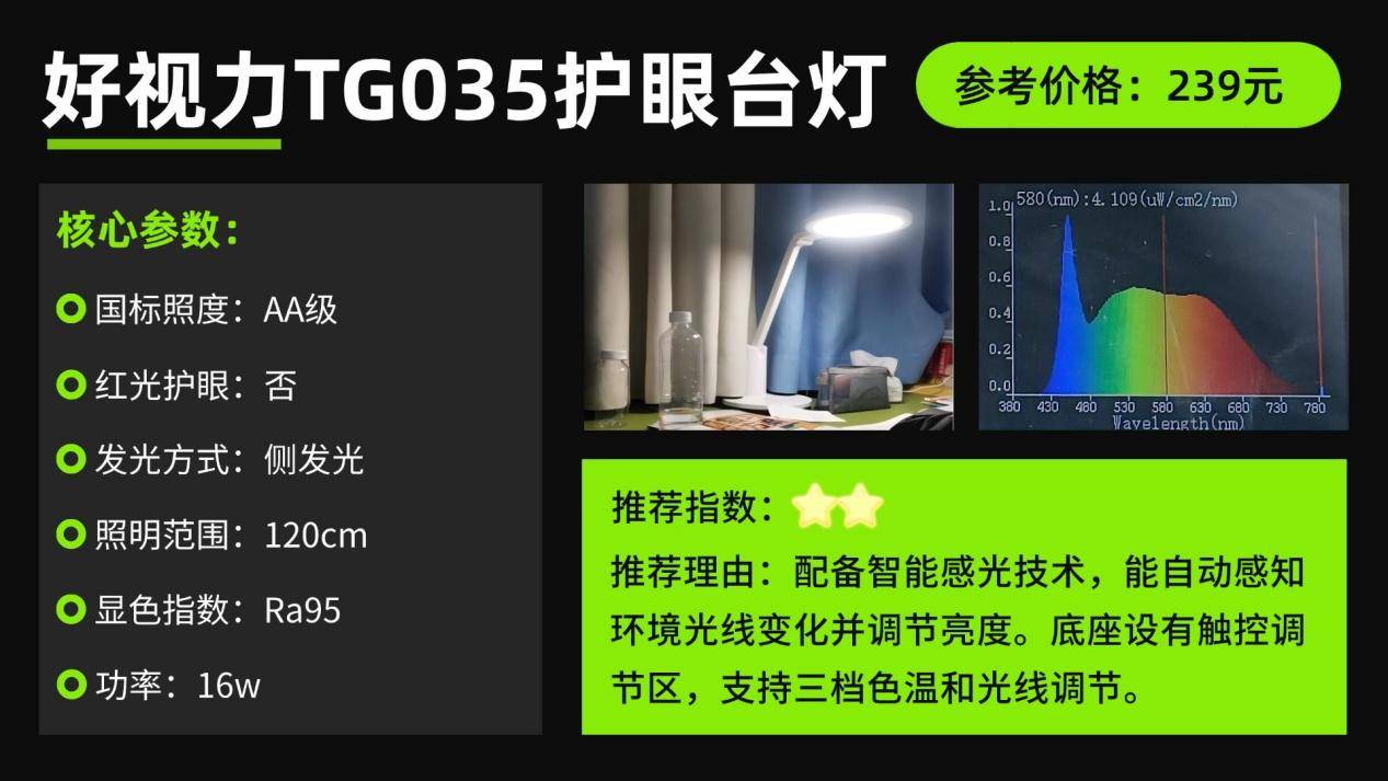 学生护眼台灯哪个品牌比较好用?好视力TG035这款台灯采用了140mm的光源直径配合上16W的整灯功率,光线可以铺满120cm的桌面。它的灯头、灯杆都能调角度,隐藏式关节设计也比较美观。