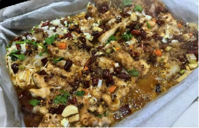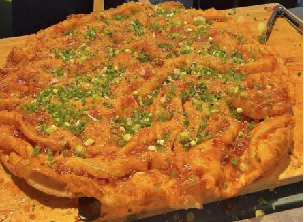 清江烤鱼,鱼肉很嫩,下面烤的焦香酥脆很入味,好吃~比较适合重口味,小酥肉现炸的刚刚好,默认给的椒盐,也可以要番茄酱的哦~