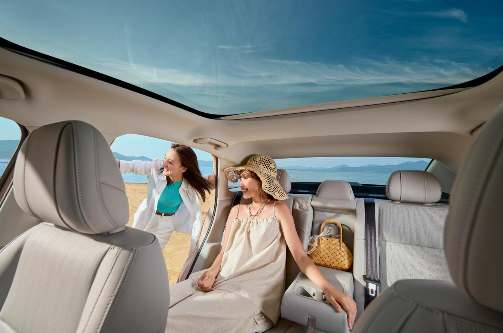 坐进车内,内饰给人的感觉是清爽实用。中控台布局比较规整,大部分功能都集成在那块大尺寸屏幕里,物理按键保留得不多,但常用的空调调节等功能还是保留了快捷操作。用料方面,手能摸到的地方,像门板扶手、中控台顶部,大多用了软性材质包裹,触感还行。座椅的填充物软硬适中,支撑性做得不错,长时间坐着不容易累。朋友提到,后排空间是这车的一个亮点,轴距带来的优势还是有的,腿部空间比较充裕,坐三个成年人不会觉得挤。后备箱开口比较大,内部形状也规整,放些大件行李或者露营装备都比较方便。对于家庭出行来说,这种空间表现还是能解决不少实际问题的。