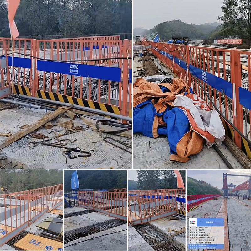 中国能建专用桥面护栏基坑护栏,是在原有常用规格基础上进行加工改进,尺寸规格仍旧使用了1.2*2米,主要加厚了整体的钢材用料以适应桥面施工作业要求,同时加装中间广告板,丝印中国能建标语和LOGO 提升企业施工形象,创造更好的施工环境,大大增强了桥面系人员施工的安全性。原材料的加厚,同时增加了护栏的使用率提高了周转率,可以随桥梁架设桥面施工逐步向前循环使用,中国能建桥面护栏重复使用在一定程度上降低了工程成本。