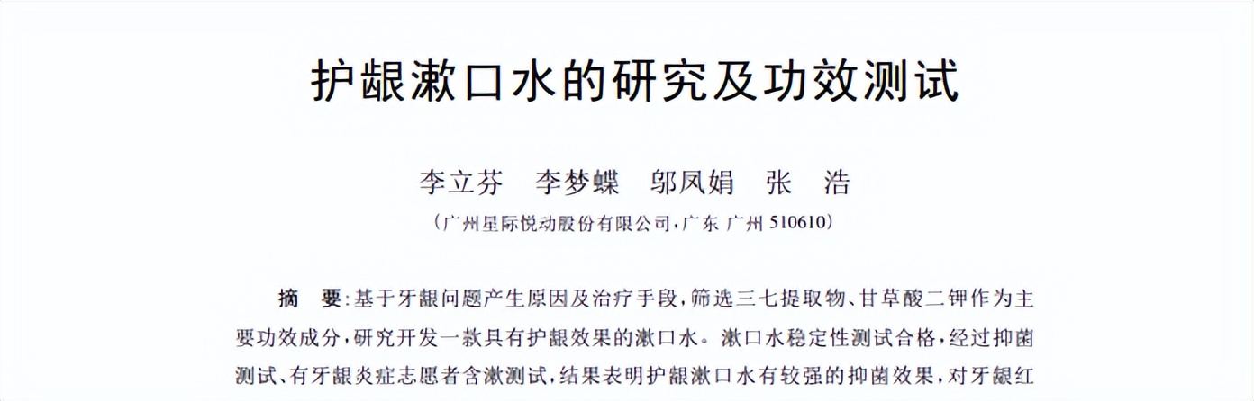 参考资料[1]李立芬,李梦蝶,邬凤娟,等.护龈漱口水的研究及功效测试[J].口腔护理用品工业,2023,33(03):21-24.