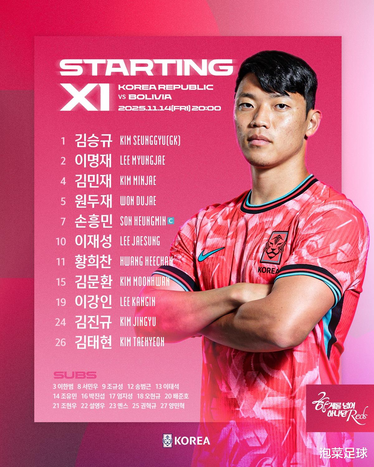 附:韩国对玻利维亚出战名单:(4-2-3-1)