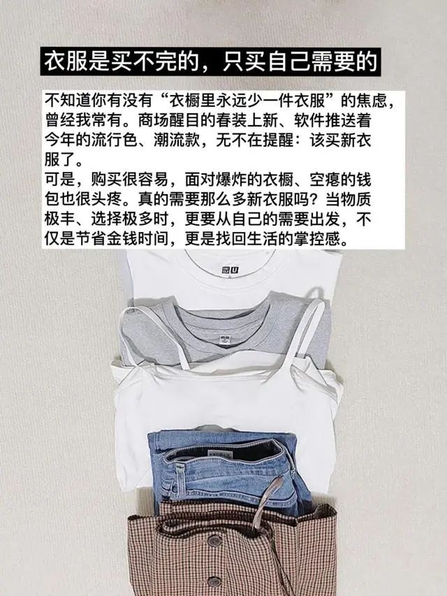 实用建议:给自己的衣服做一个分类统计,做到心中有数。在购买新衣服之前,先看看清单,思考一下是否真的需要。