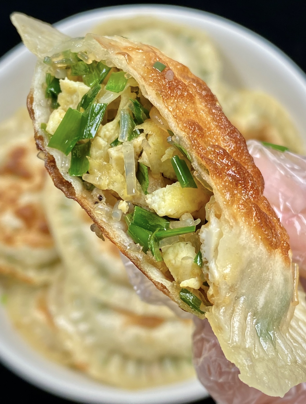 第一口别急着吹,小心爆汁!外皮像千层酥,牙齿刚破防,韭菜的清新、鸡蛋的焦香、虾皮的鲜咸集体冲锋,烫得直跳脚也舍不得吐。蘸点山西老陈醋,酸味一激,层次直接拉满;配碗小米粥,脆与绵的碰撞,胃和心同时被治愈。剩下一两个?隔天用空气炸锅180℃回炉3分钟,脆度复活,当早餐秒杀路边摊。