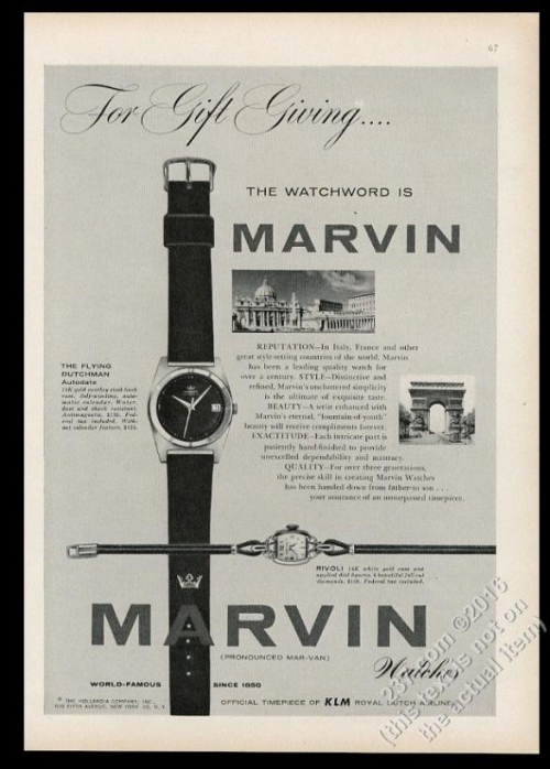 1955年,Marvin正式成为KLM指定合作品牌,为飞行员及机组人员打造专业时计——其中“Flying Dutchman”系列与“轮胎表”一同,成为上世纪50年代摩纹制表技艺与航空合作的高光时刻。搭载手动上链Marvin 560机芯的初代Flying Dutchman,至今仍为藏家珍视。