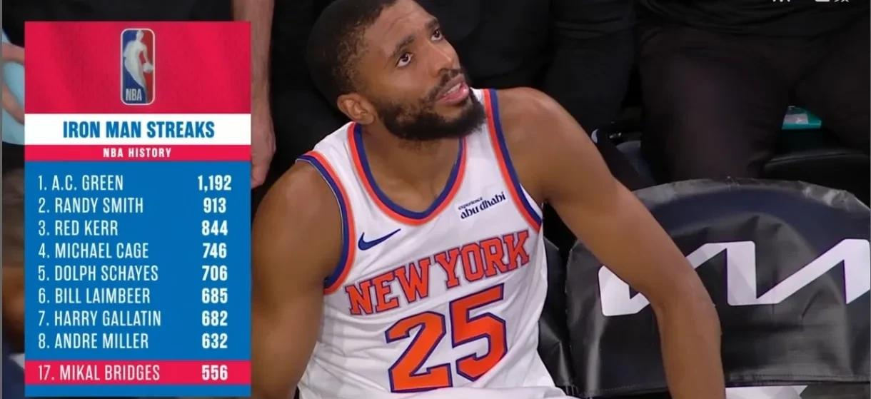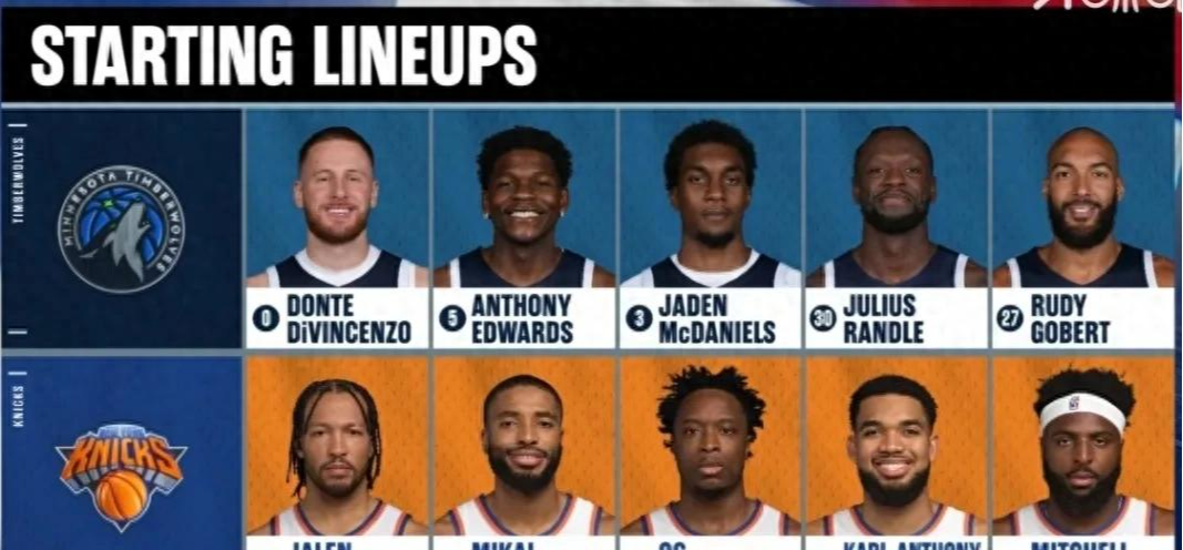 尼克斯首发:阿努诺比、唐斯、罗宾逊、布伦森、布里奇斯。