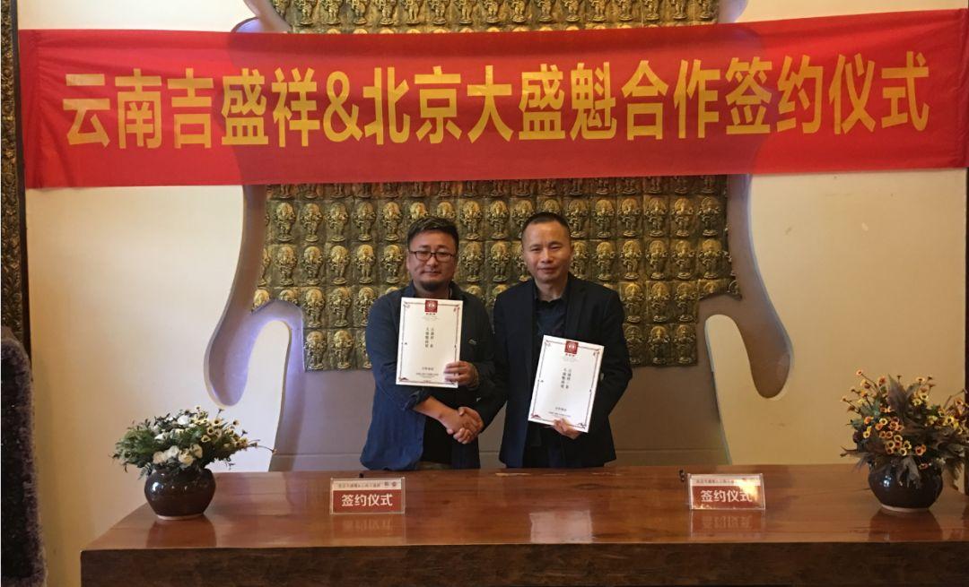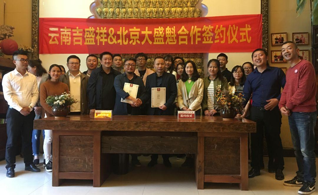 大盛魁掌柜徐鹏与吉盛祥总经理李易霖双方签署了战略合作伙伴协议及相关条款,旨在茶山基地的全面合作、产品供应、全国渠道共享方面的深度合作。以成为普洱茶产业链整合运营,向全世界传播中华茶文化为使命。致力打造普洱茶消费生态圈为目标。