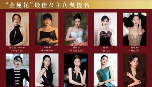 当然,金莲奖最佳男女主的提名并不止这些,除了上面提到的人之外,最佳女主提名还有马伊琍《我的阿勒泰》、周晓彤《梅花红桃》、刘诗诗《一念关山》、李沁《追风者》、杨紫《承欢记》、唐嫣《繁花》、余诗曼《新闻女王》。