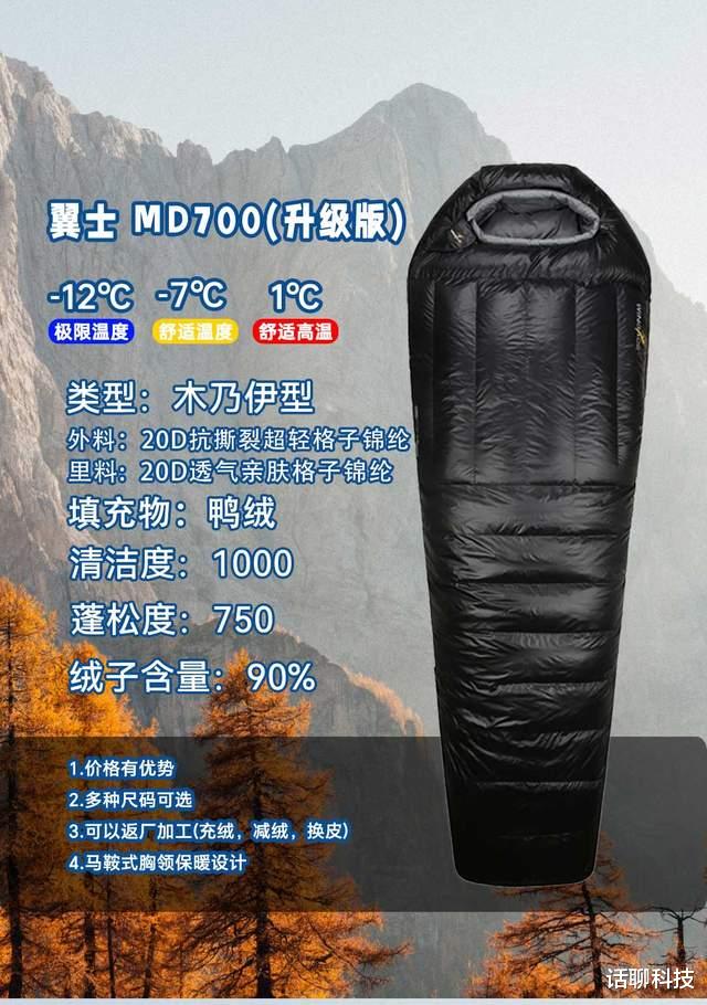 前言:对于户外新手而言,重装徒步的装备选择直接影响体验,而睡袋作为夜间保暖核心,700g充绒量的鸭绒款是最优入门选择——它既具备-5℃至0℃的实用保暖范围,能应对多数北方初冬环境,并且重量约1000-1300g,并且极限压缩体积在7L左右,也都在与收纳体积间达到平衡,不会给徒步增加过多负担,且性价比远高于更高充绒量的鹅绒睡袋,完美适配新手“少花钱、少踩坑”的需求。